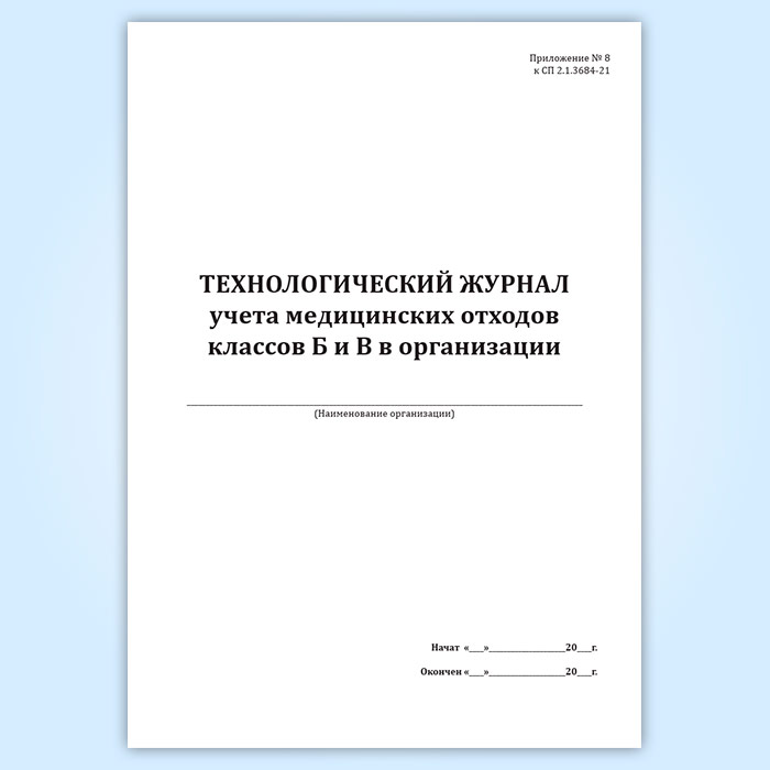 Технологический журнал учета медицинских отходов классов Б и В в организации в Великом Новгороде купить