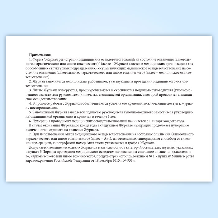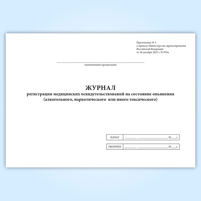 Журнал регистрации медицинских освидетельствований на состояние опьянения (алкогольного, наркотического или иного токсического) в Великом Новгороде купить