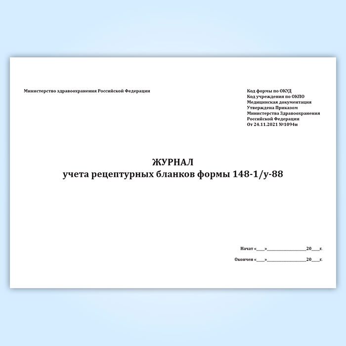 Журнал учета рецептурных бланков формы 148-1/у-88 (новый) (Приказ Минздрава России от 24.11.2021 N 1094н) в Великом Новгороде купить