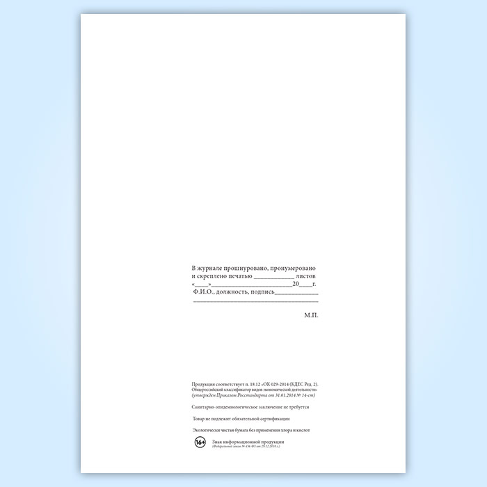 Вы получаете печатную продукцию прошнурованной и c местом для вашей печати в соответствии с действующими нормативными документами: