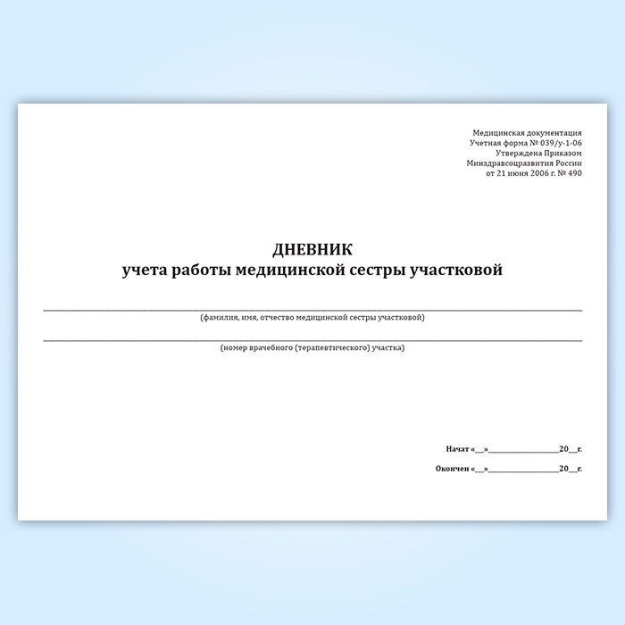 Дневник учета работы медицинской сестры участковой (форма 039/у-1-06) в Великом Новгороде купить