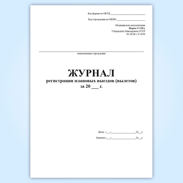 Журнал регистрации плановых выездов (вылетов) (форма 120/у) в Великом Новгороде купить