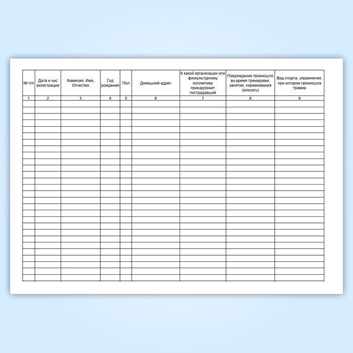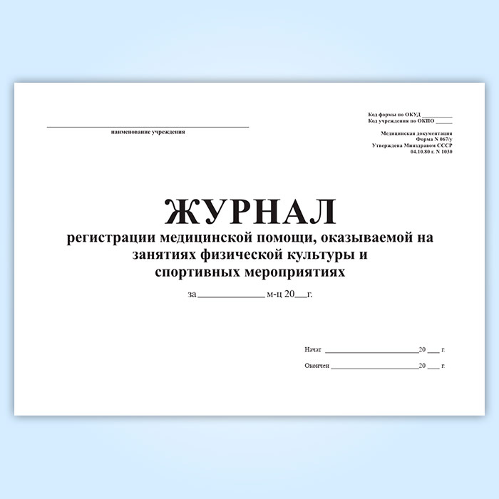 Журнал регистрации медицинской помощи, оказываемой на занятиях физической культуры и спортивных мероприятиях (форма 067/у) в Великом Новгороде купить