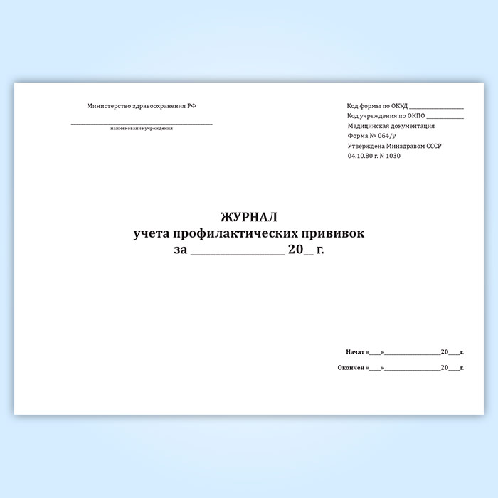 Журнал учета профилактических прививок (форма № 064/у) в Великом Новгороде купить