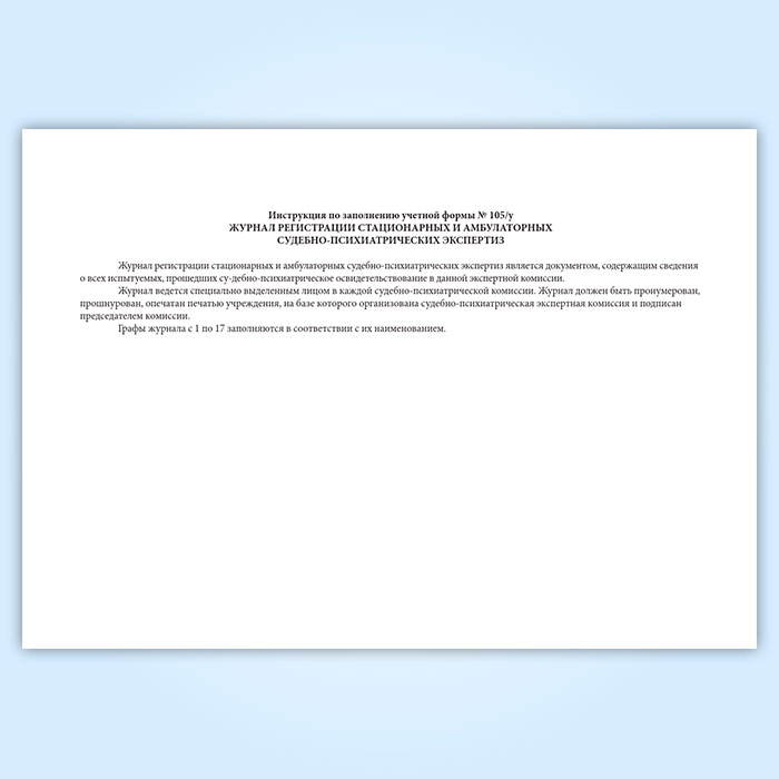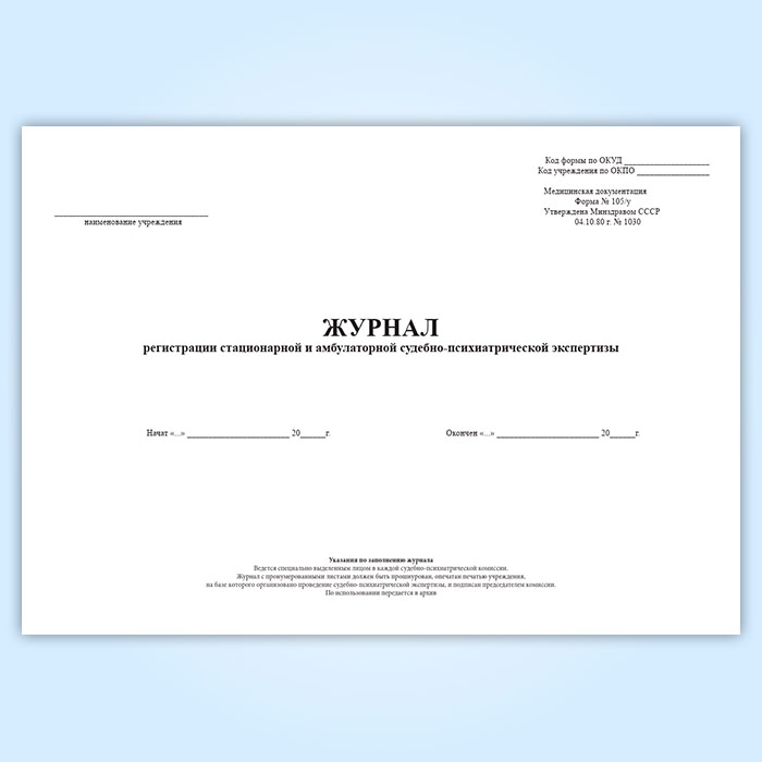 Журнал регистрации стационарной и амбулаторной судебно-психиатрической экспертизы (форма 105/у) в Великом Новгороде купить