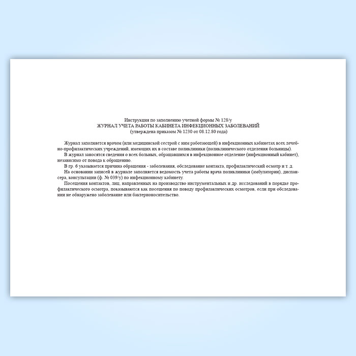Журнал учета работы кабинета инфекционных заболеваний (форма 128/у) в Великом Новгороде купить