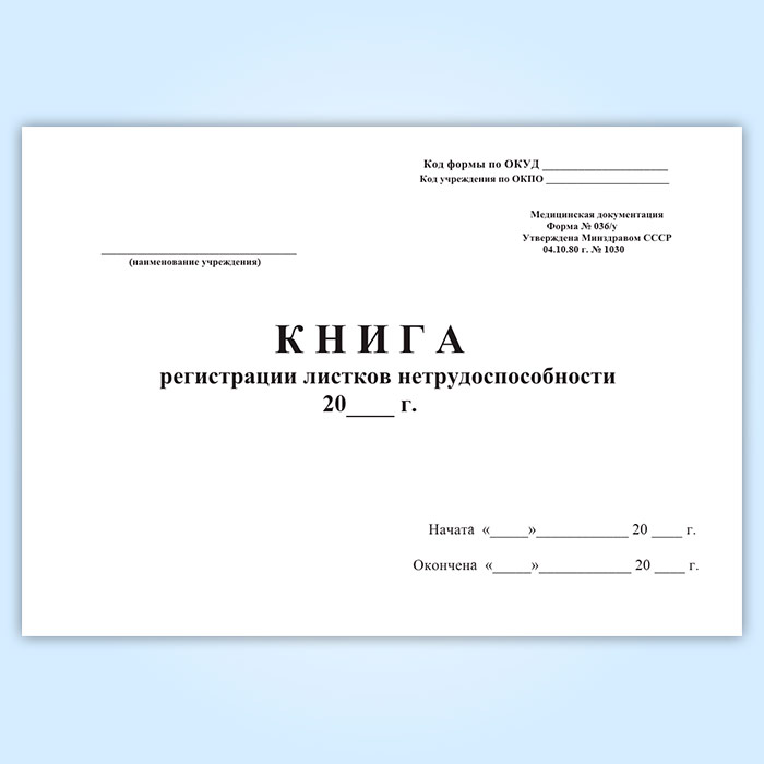 Книга регистрации листков нетрудоспособности (форма 036/у) в Великом Новгороде купить