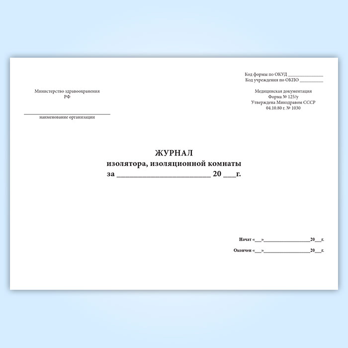 Журнал изолятора, изоляционной комнаты (форма 125/у) в Великом Новгороде купить