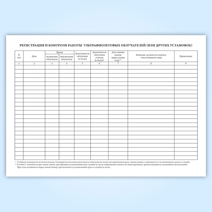 Журнал учета работы ультрафиолетовых облучателей (или других установок) (обсерватор) в Великом Новгороде купить