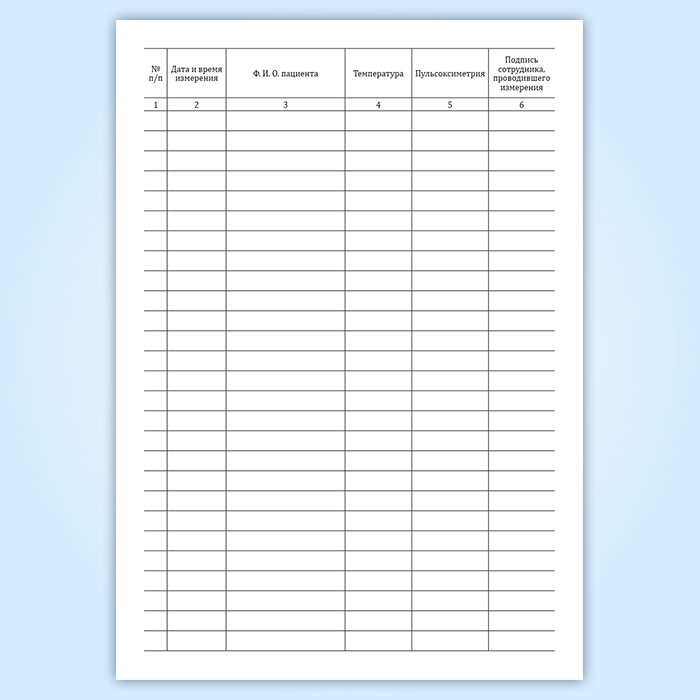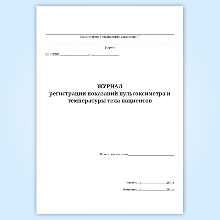 Журнал регистрации показаний пульсоксиметра и температуры тела пациентов в Великом Новгороде купить