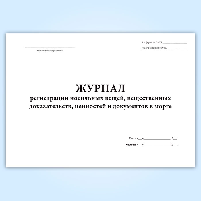 Журнал регистрации носильных вещей, вещественных доказательств, ценностей и документов в морге (форма 191/у) в Великом Новгороде купить
