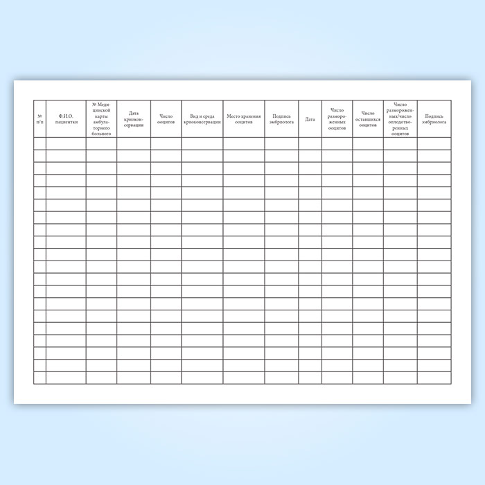 Журнал учета, хранения и использования криоконсервированных ооцитов пациенток в Великом Новгороде купить