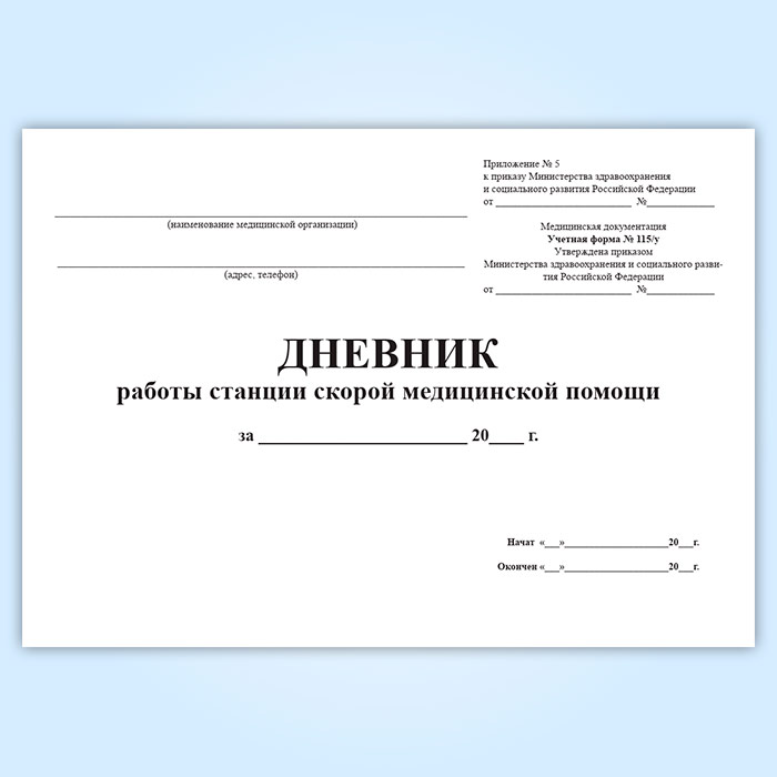 Дневник работы станции скорой медицинской помощи (форма 115/у) в Великом Новгороде купить