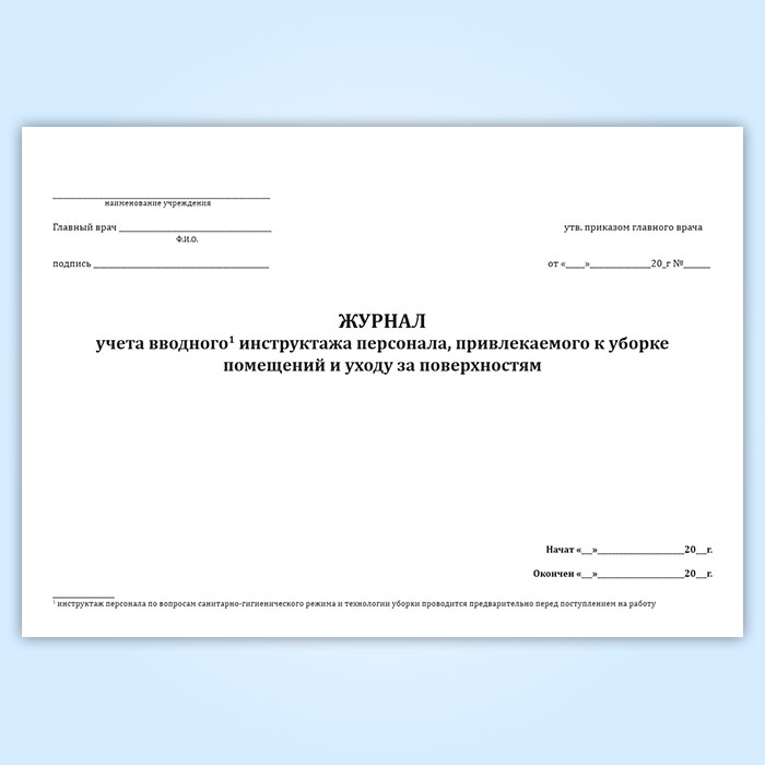 Журнал учета вводного инструктажа персонала, привлекаемого к уборке помещений и уходу за поверхностями в Великом Новгороде купить
