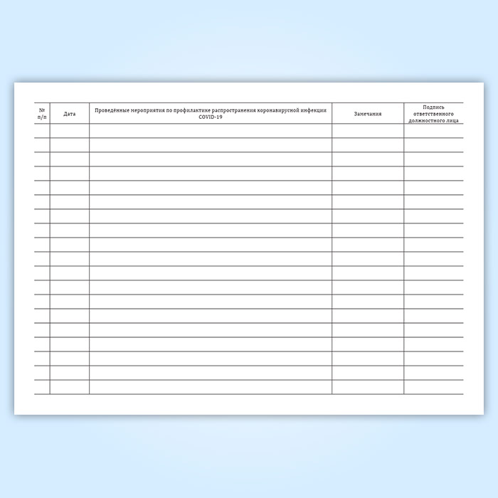 Журнал учета проведенных мероприятий по профилактике распространения коронавирусной инфекции COVID-19 в Великом Новгороде купить