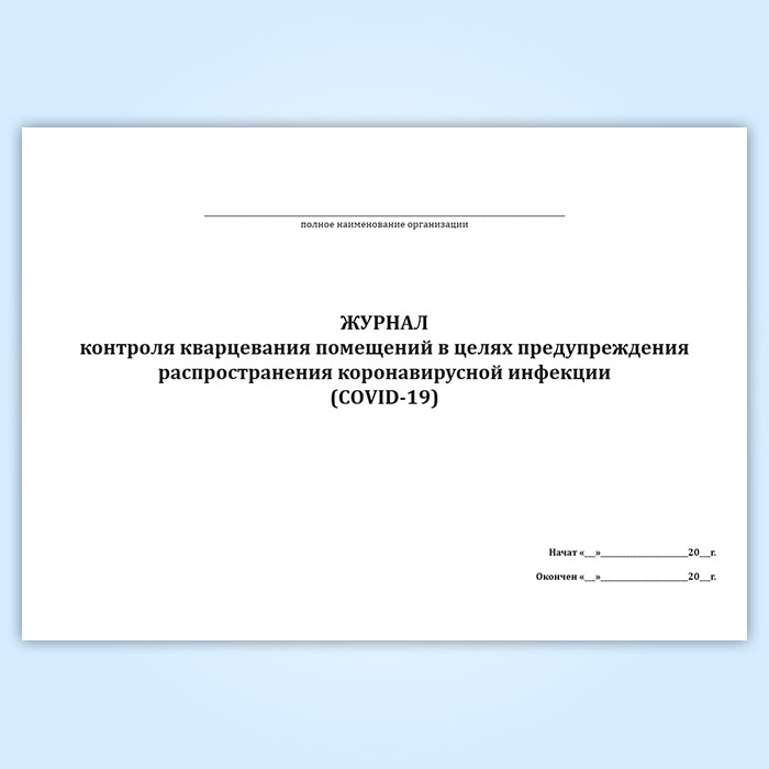 Журнал контроля кварцевания помещений в целях предупреждения распространения коронавирусной инфекции (COVID-19) в Великом Новгороде купить