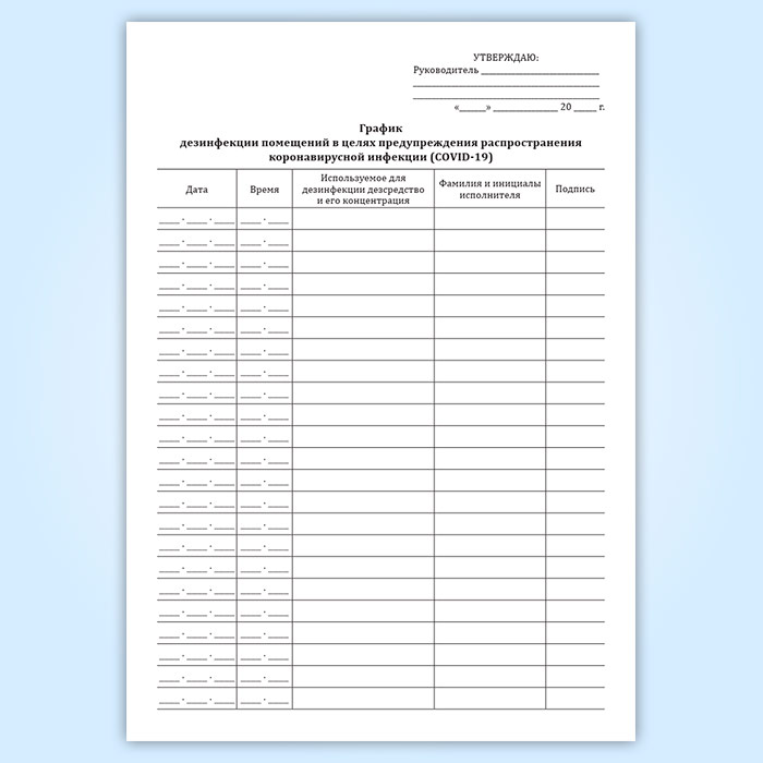 Журнал графика дезинфекции помещений в целях предупреждения распространения коронавирусной инфекции (COVID-19) в Великом Новгороде купить