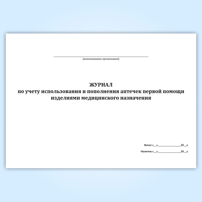 Журнал по учету использования и пополнения аптечек первой помощи изделиями медицинского назначения в Великом Новгороде купить