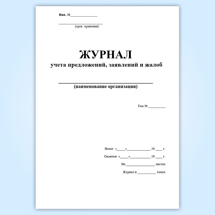 Журнал учета предложений, заявлений и жалоб в Великом Новгороде купить