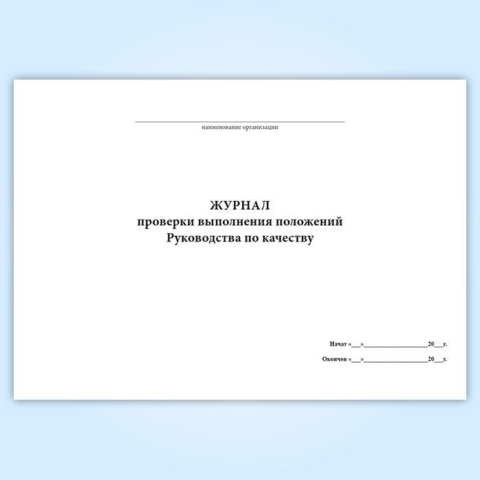 Журнал проверки выполнения положений Руководства по качеству в Великом Новгороде купить