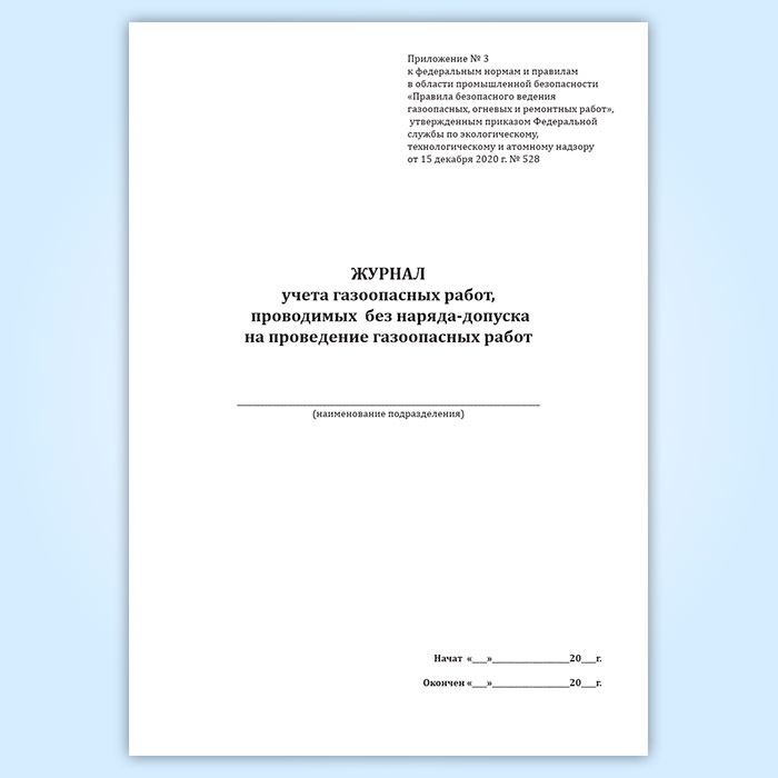 Журнал учета газоопасных работ, проводимых без наряда-допуска на проведение газоопасных работ в Великом Новгороде купить