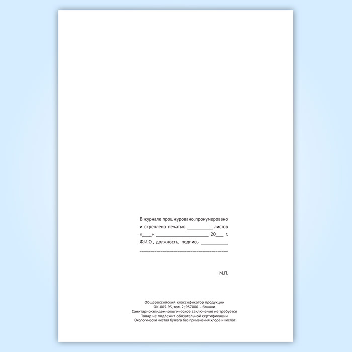 Вы получаете печатную продукцию прошнурованной и c местом для вашей печати в соответствии с действующими нормативными документами: