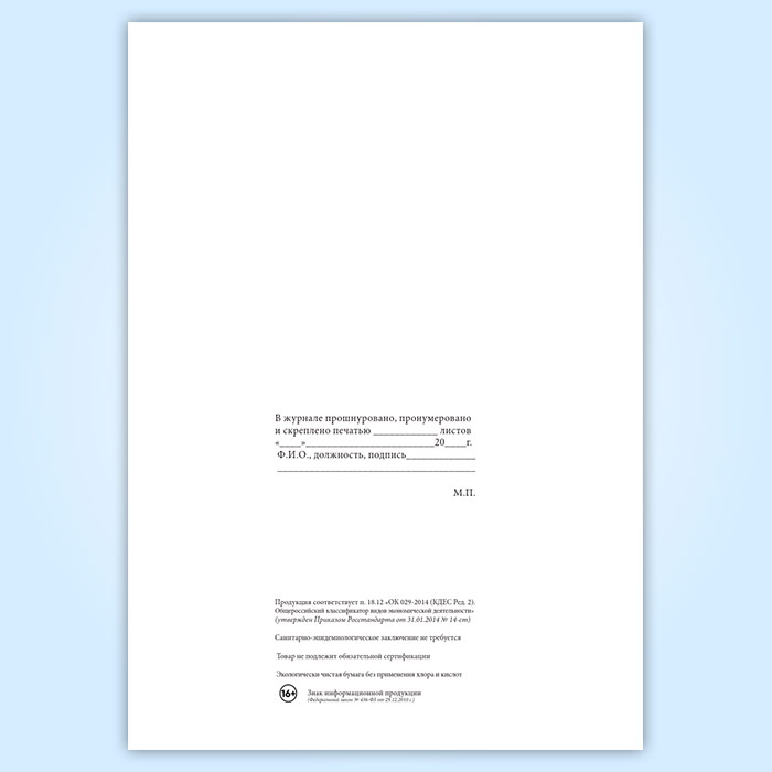 Вы получаете печатную продукцию прошнурованной и c местом для вашей печати в соответствии с действующими нормативными документами: