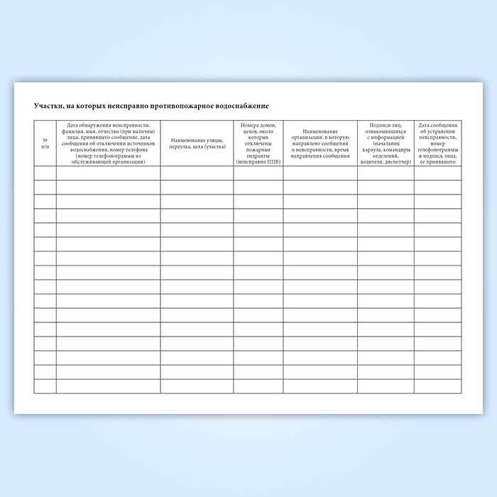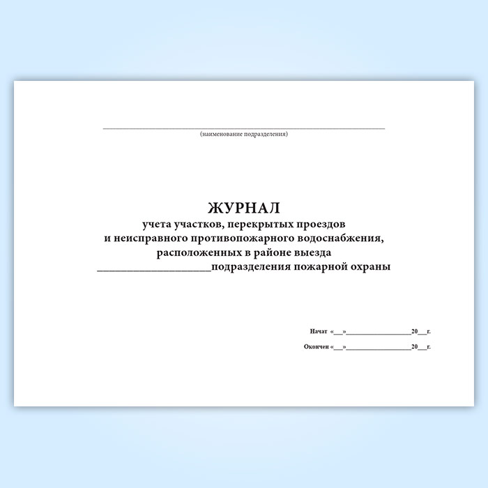 Журнал учета участков, перекрытых проездов и неисправного противопожарного водоснабжения, расположенных в районе выезда подразделения пожарной охраны в Великом Новгороде купить