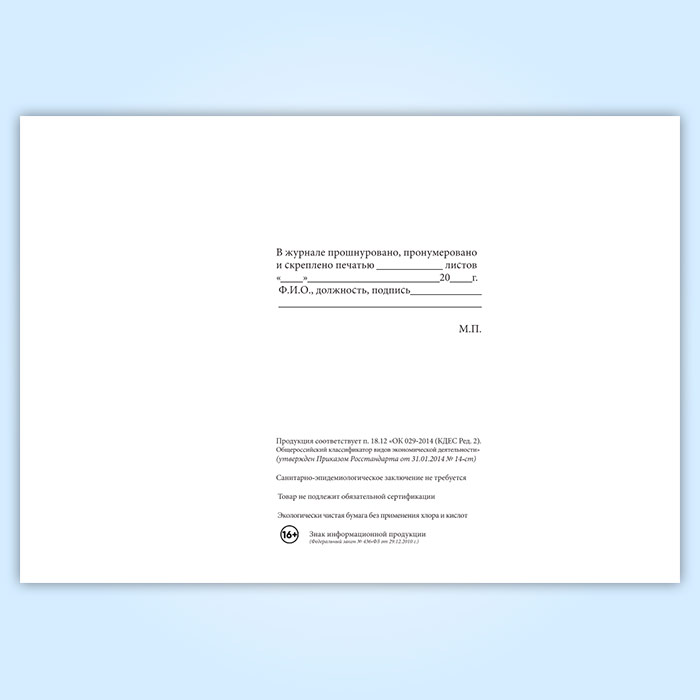 Вы получаете печатную продукцию прошнурованной и c местом для вашей печати в соответствии с действующими нормативными документами: