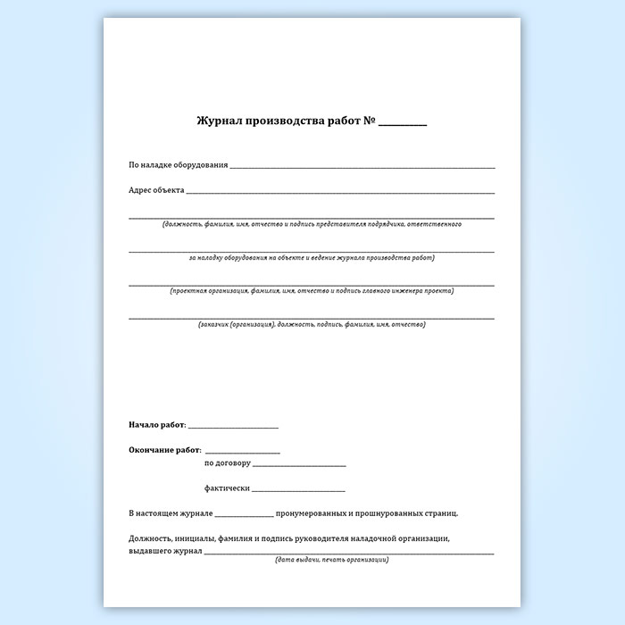 Журнал производства работ по наладке оборудования на объекте (СП 245.1325800.2015) в Великом Новгороде купить