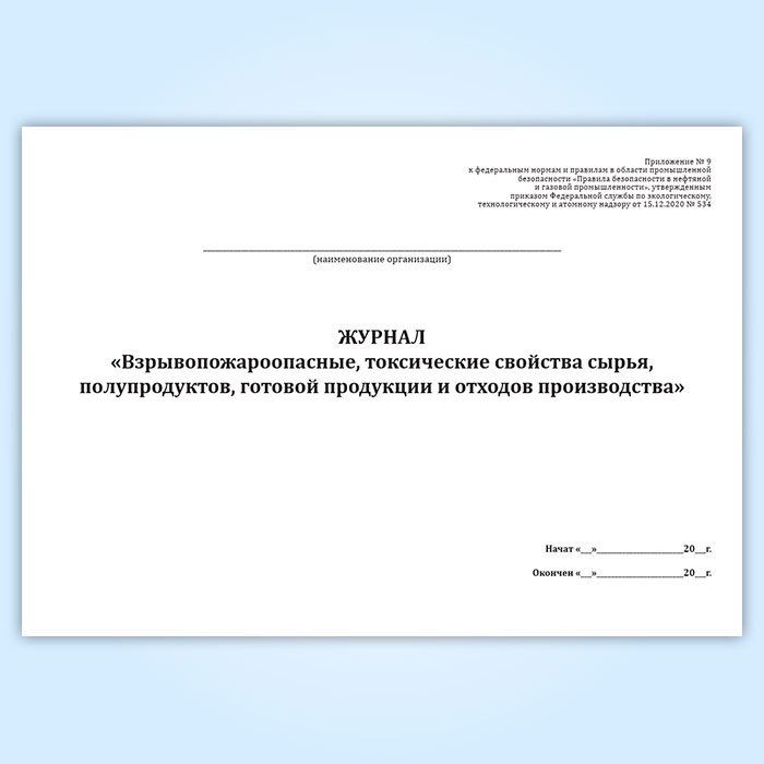 Журнал «Взрывопожароопасные, токсические свойства сырья, полупродуктов, готовой продукции и отходов производства» в Великом Новгороде купить
