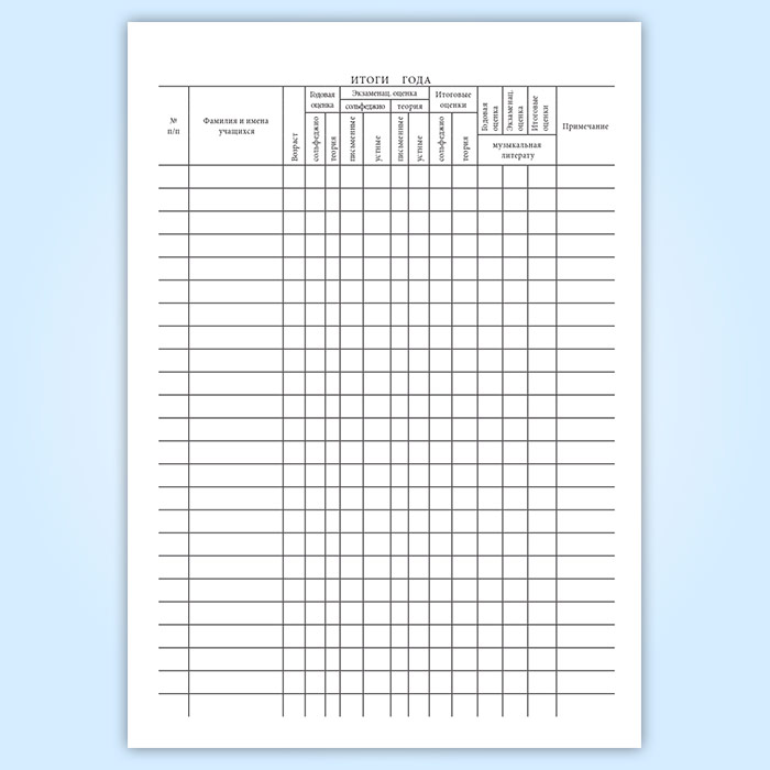 Журнал посещаемости и успеваемости учеников музыкальной школы (групповые занятия) в Великом Новгороде купить