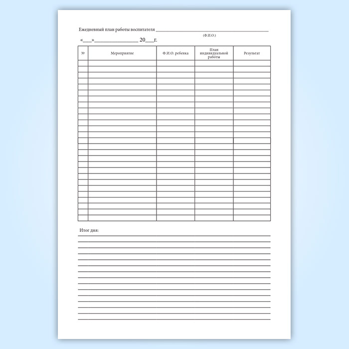 Ежедневный план работы воспитателя в Великом Новгороде купить
