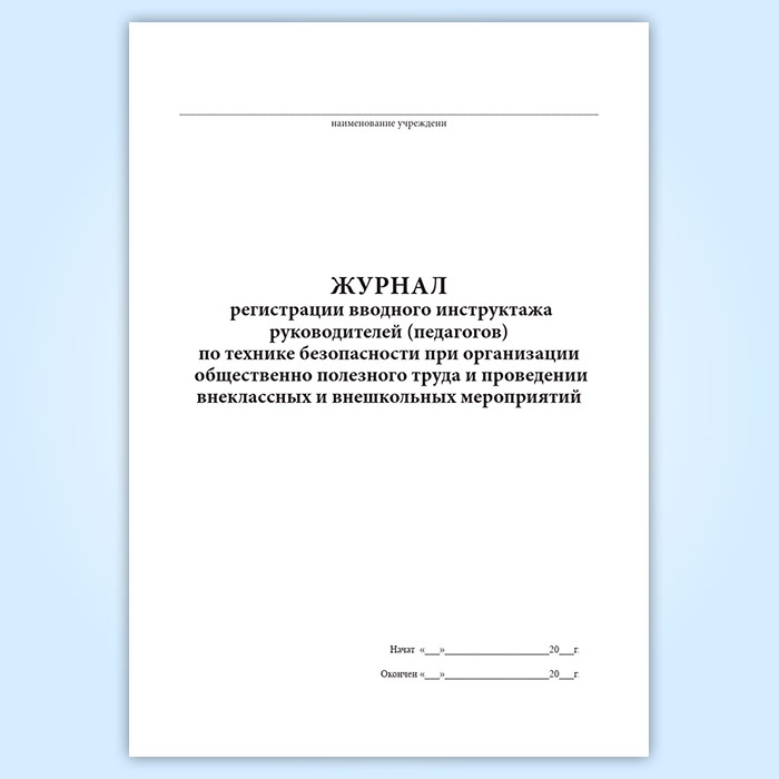 Журнал регистрации вводного инструктажа руководителей (педагогов) по технике безопасности при организации общественно полезного труда и проведении внеклассных и внешкольных мероприятий в Великом Новгороде купить