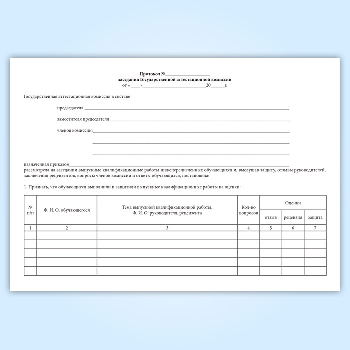 Книга протоколов заседаний Государственной аттестационной комиссии (горизонтальный) в Великом Новгороде купить
