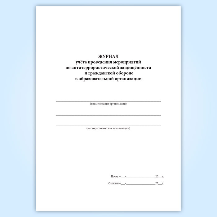 Журнал учета проведения мероприятий по антитеррористической защищенности и гражданской обороне в образовательной организации в Великом Новгороде купить