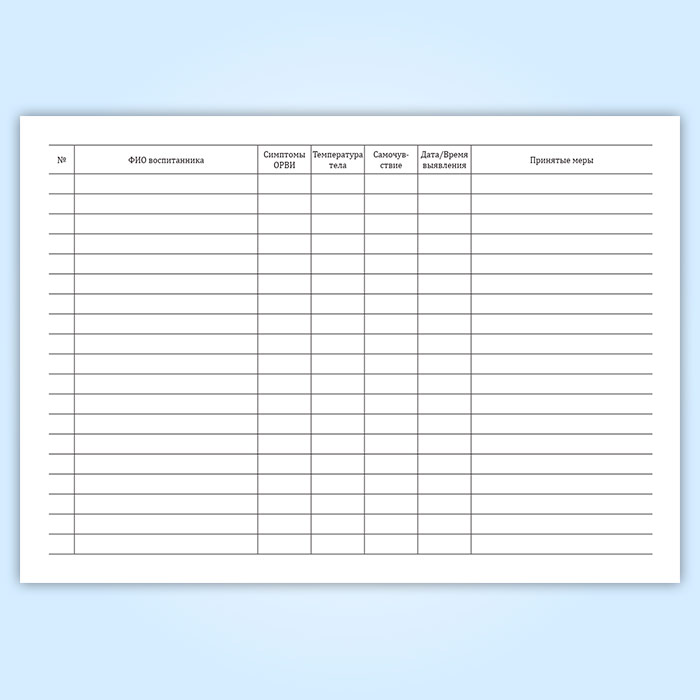 Журнал учета воспитанников с выявленными симптомами ОРВИ в Великом Новгороде купить