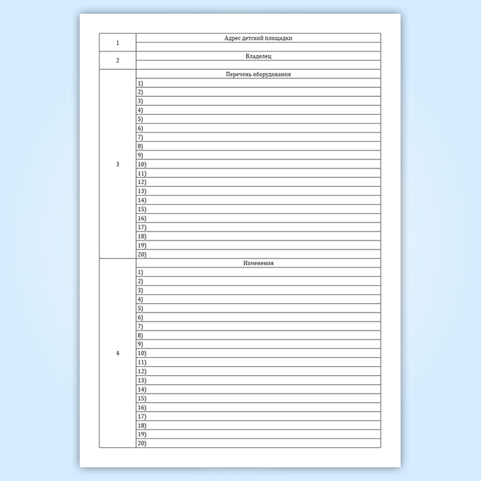 Журнал обхода детских игровых и спортивных площадок в Великом Новгороде купить