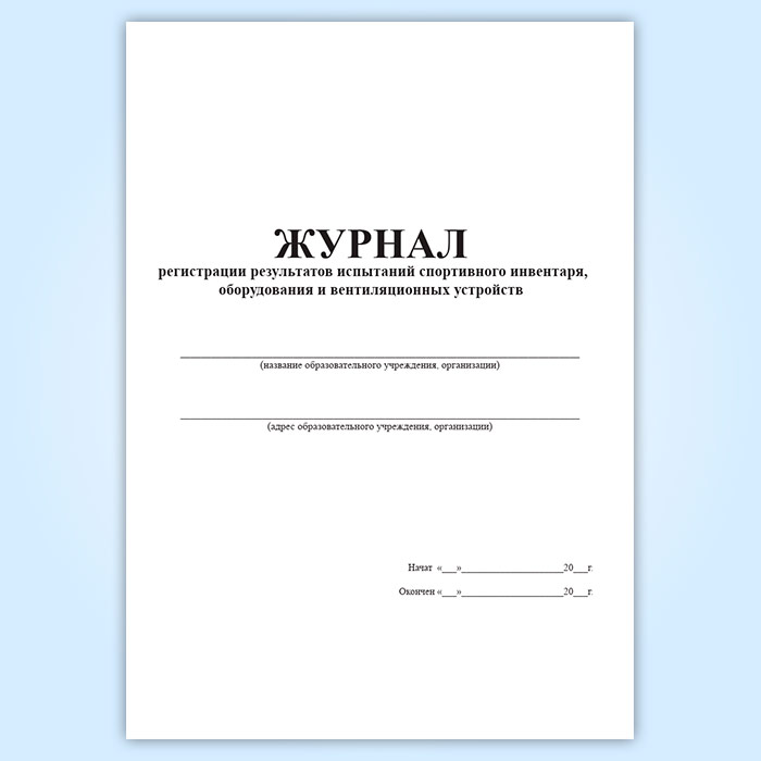 Журнал регистрации результатов испытаний спортивного инвентаря, оборудования и вентиляционных устройств в Великом Новгороде купить