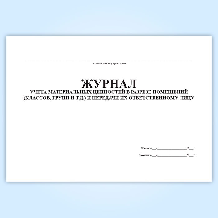 Журнал учета материальных ценностей в разрезе помещений (классов, групп и т.д.) и передачи их ответственному лицу в Великом Новгороде купить