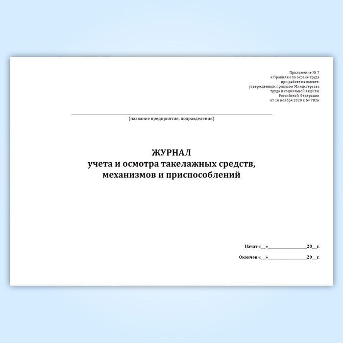 Журнал учета и осмотра такелажных средств, механизмов и приспособлений (Приказ Минтруда России от 16.11.2020 N 782н) в Великом Новгороде купить