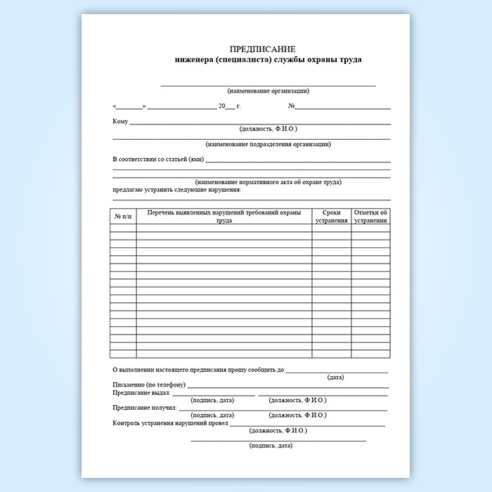Журнал учета выдачи предписаний инженера (специалиста) службы охраны труда в Великом Новгороде купить