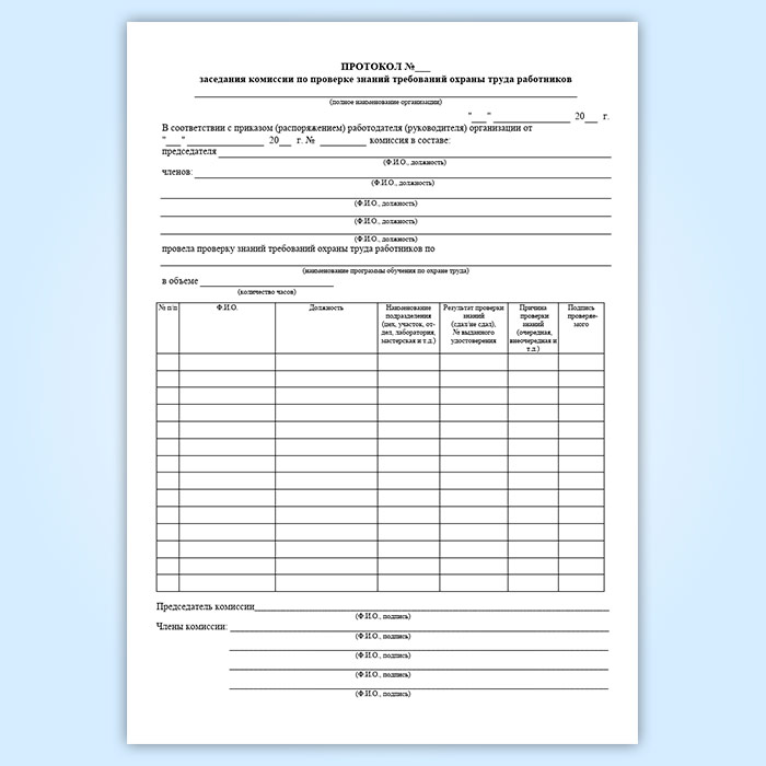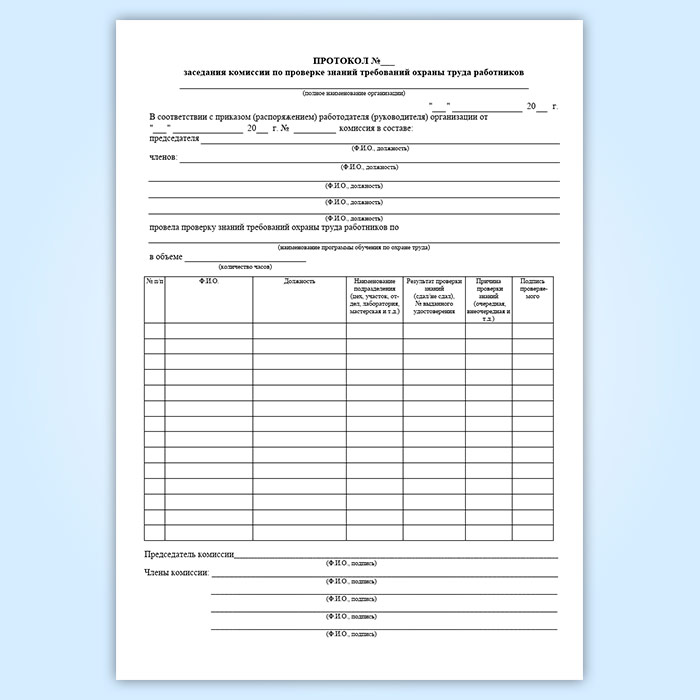 Журнал (протокол) проверки знаний правил охраны труда в Великом Новгороде купить