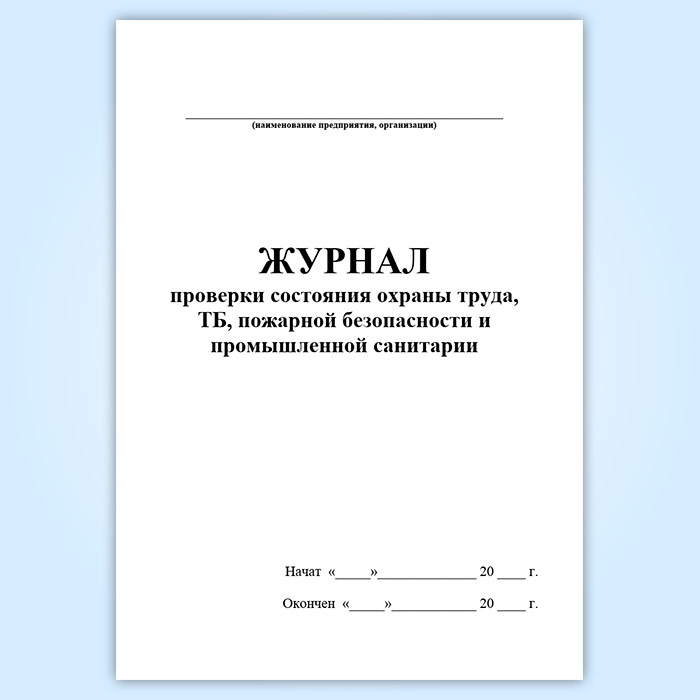 Журнал проверки состояния охраны труда, ТБ, пожарной безопасности и промышленной санитарии в Великом Новгороде купить