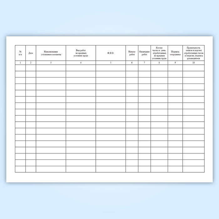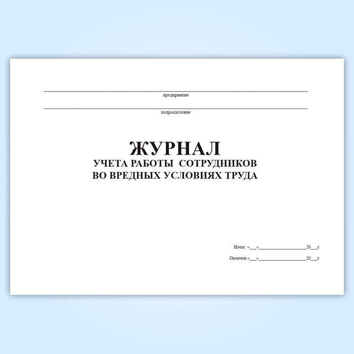 Журнал учета работы сотрудников во вредных условиях труда в Великом Новгороде купить