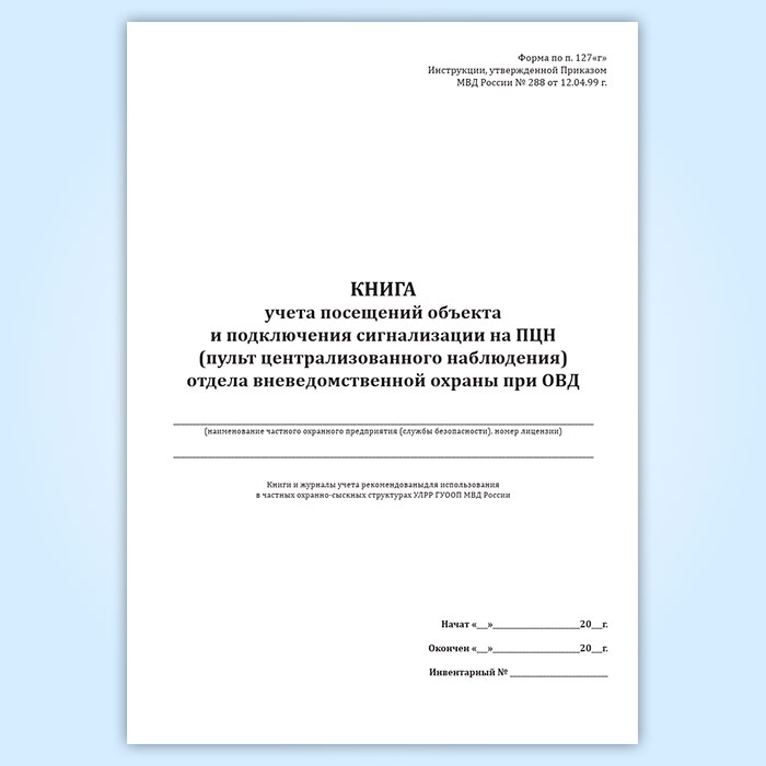 Книга учета посещений объекта и подключения сигнализации на ПЦН (пульт централизованного наблюдения) отдела вневедомственной охраны при ОВД (форма 127 г) в Великом Новгороде купить