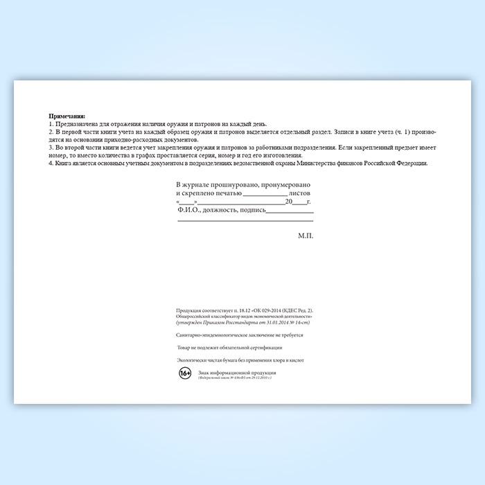 Книга учета и персонального закрепления оружия и патронов в Великом Новгороде купить