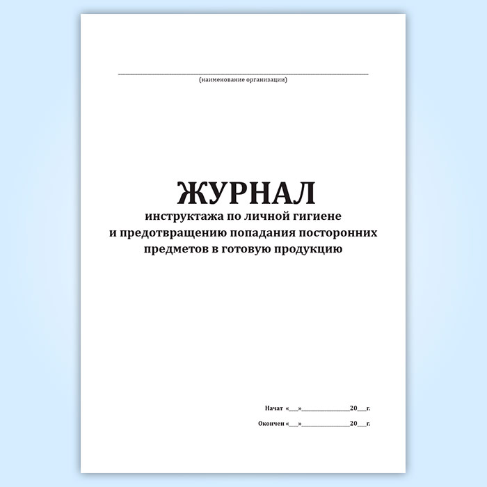 Журнал инструктажа по личной гигиене и предотвращению попадания посторонних предметов в готовую продукцию в Великом Новгороде купить
