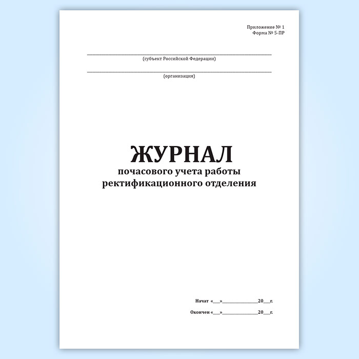 Журнал почасового учета работы ректификационного отделения (форма № 5-ПР) в Великом Новгороде купить