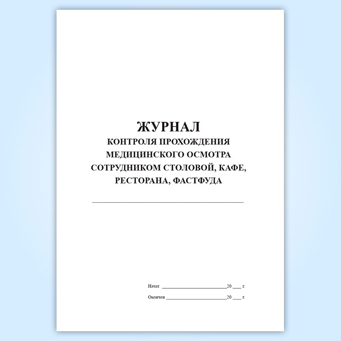 Журнал контроля прохождения медицинского осмотра сотрудником столовой, кафе, ресторана, фастфуда в Великом Новгороде купить